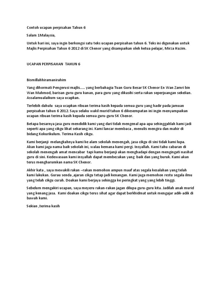 Teks Ucapan Perpisahan Cikgu Kepada Murid Doc